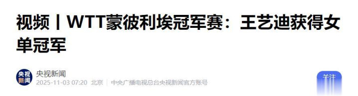 央视新闻——视频丨WTT蒙彼利埃冠军赛:王艺迪获得女单冠军