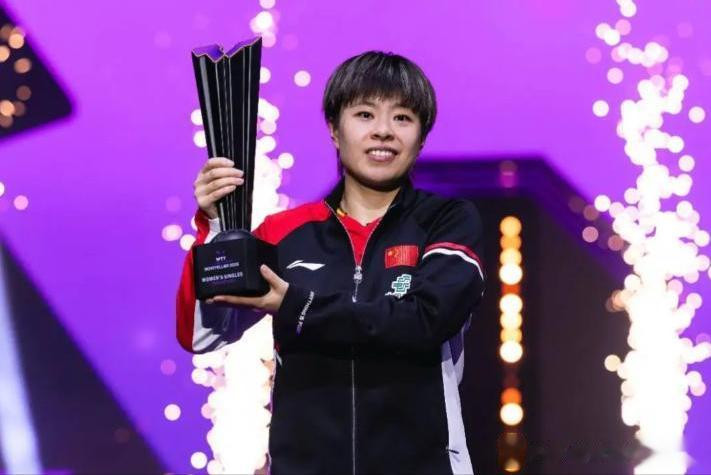 同时也追平了队友孙颖莎在本年度的夺冠次数。